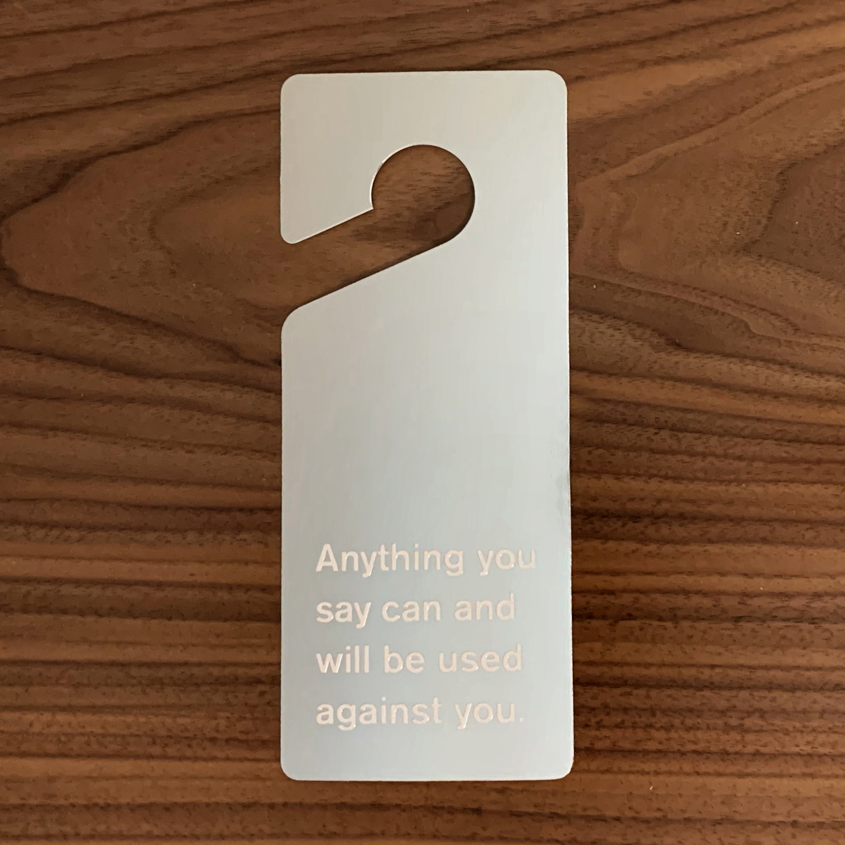 3.5 x 8.5 inches - Mirror finished door hanger on thick cardstock.