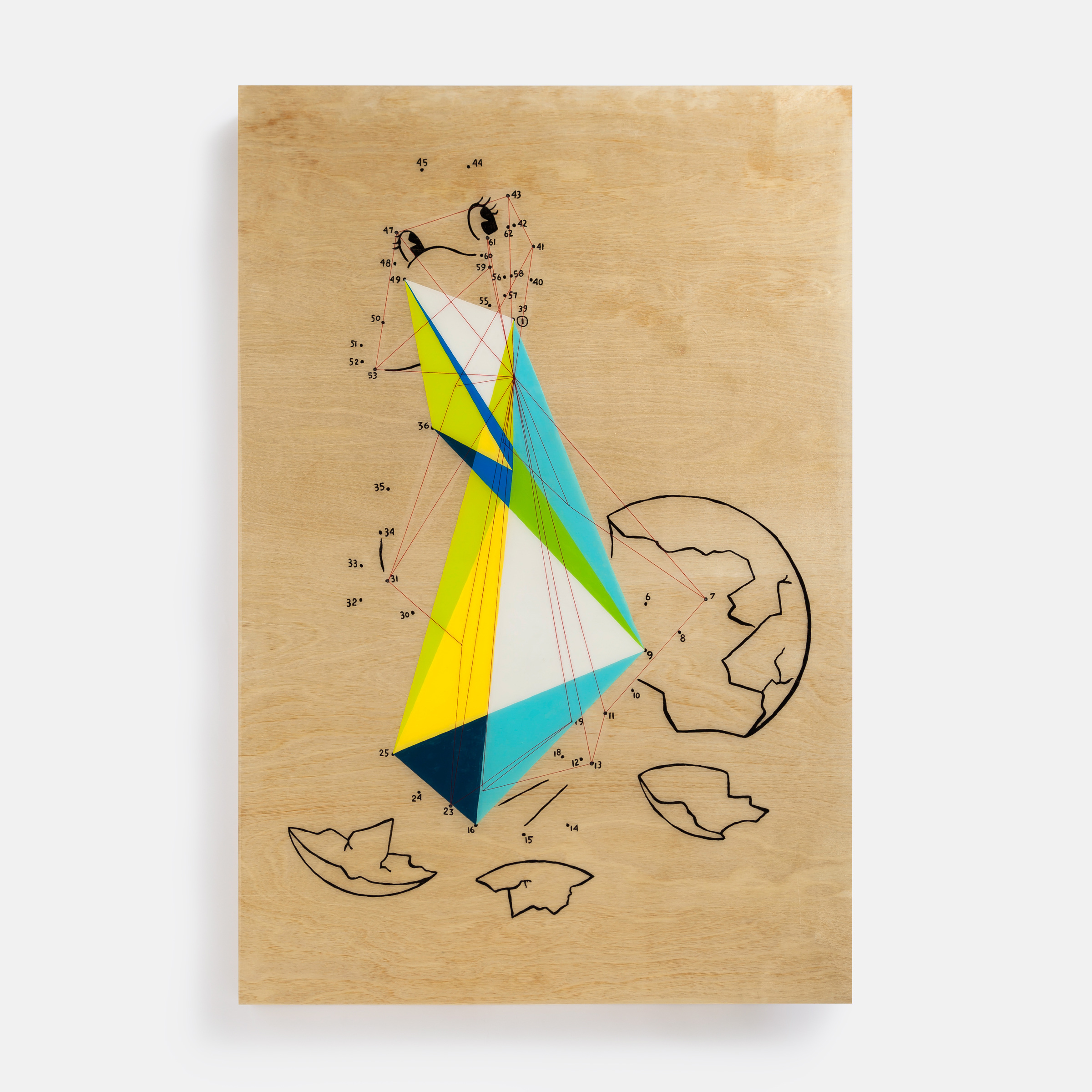 Acrylic and thread on wood panel. Connecting the dots through Prime and Square number sequences.