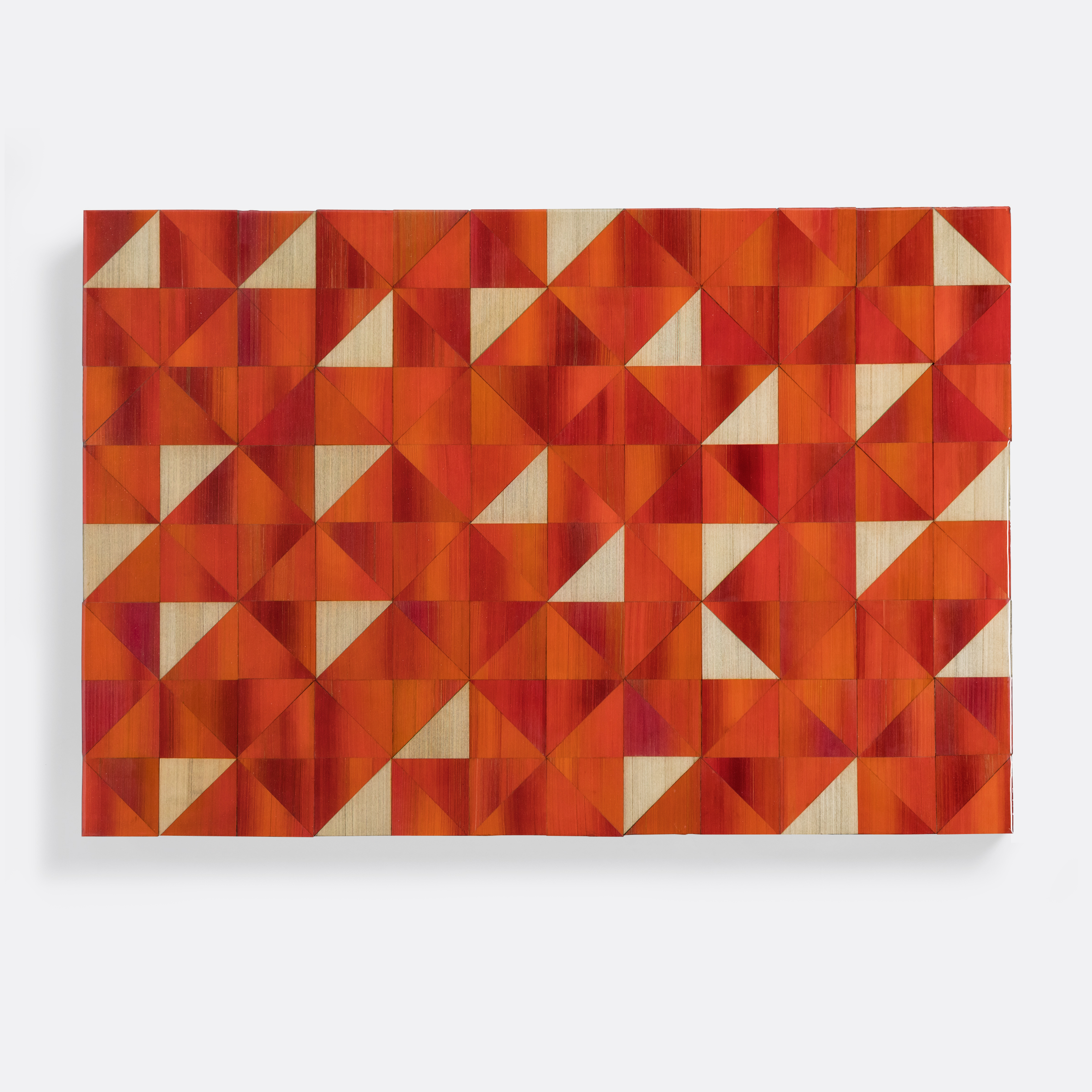 Paperback books are cut and then sorted into gradation patterns using the edges of the paper. Finished with a high-gloss UV resin.