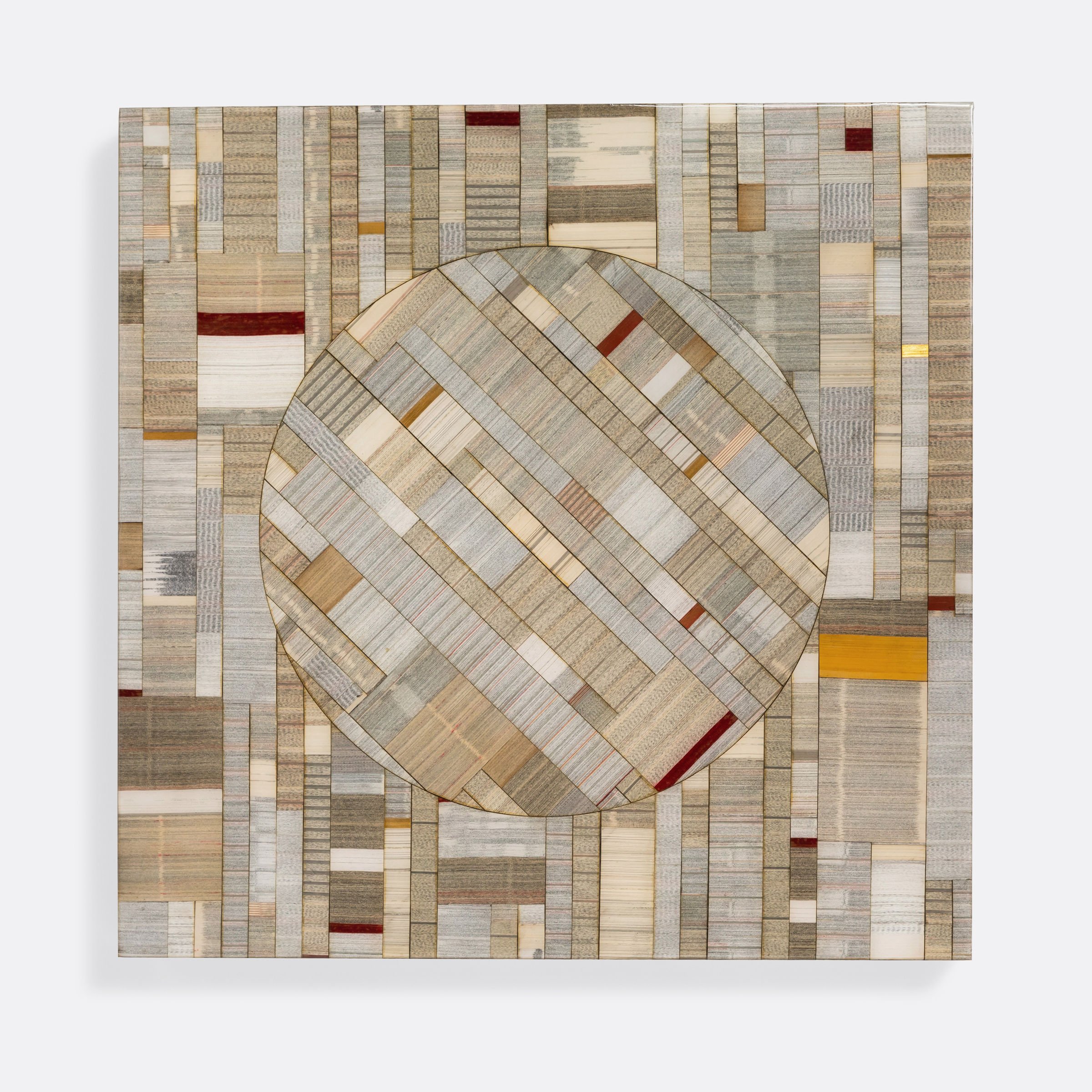 Old Bibles are cut and then sorted into patterns using the edges of the paper. Finished with a high-gloss UV resin.