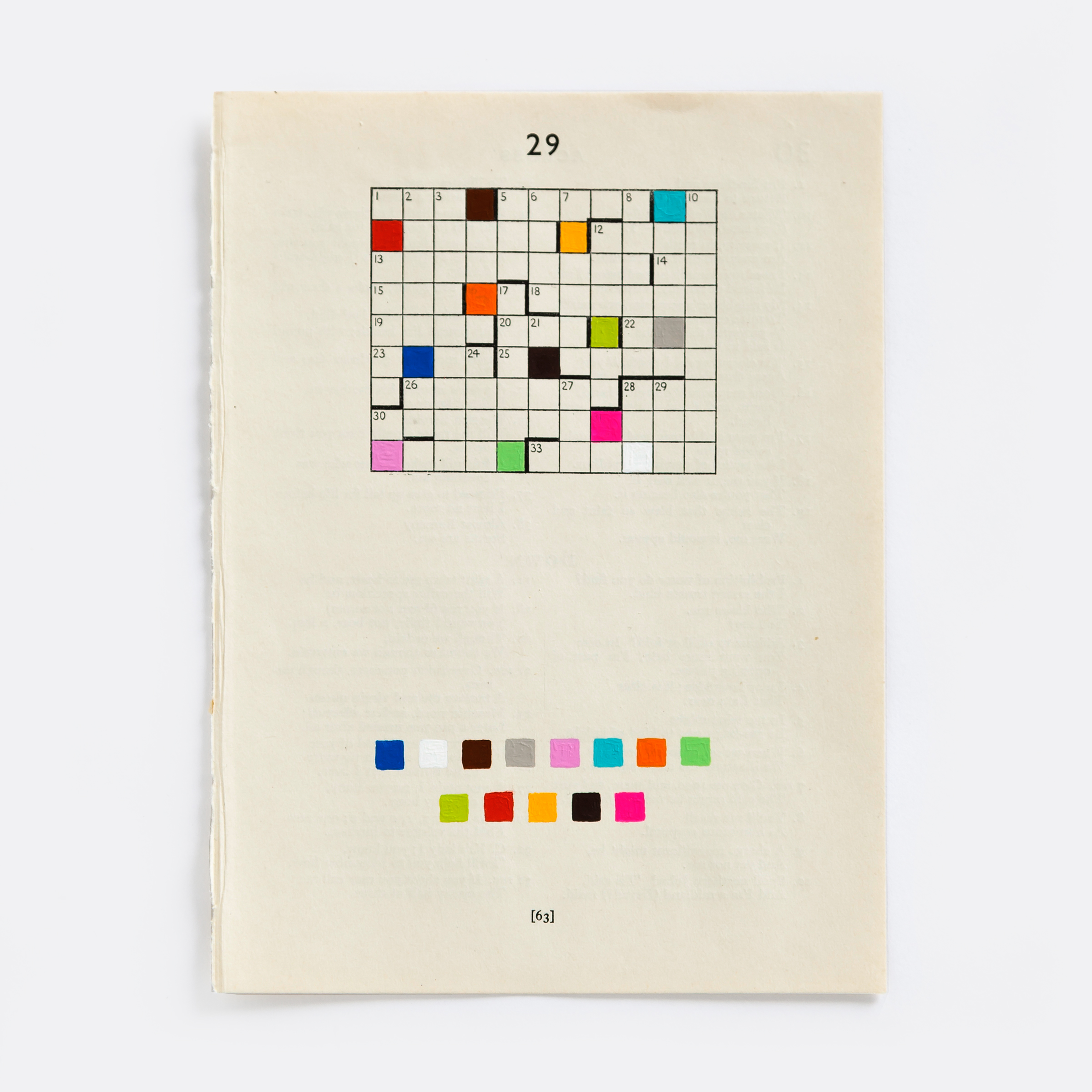 Acrylic on Oxford Crossword puzzle from the 1930's. To decode the message, the crossword must be solved. Original clues are included.